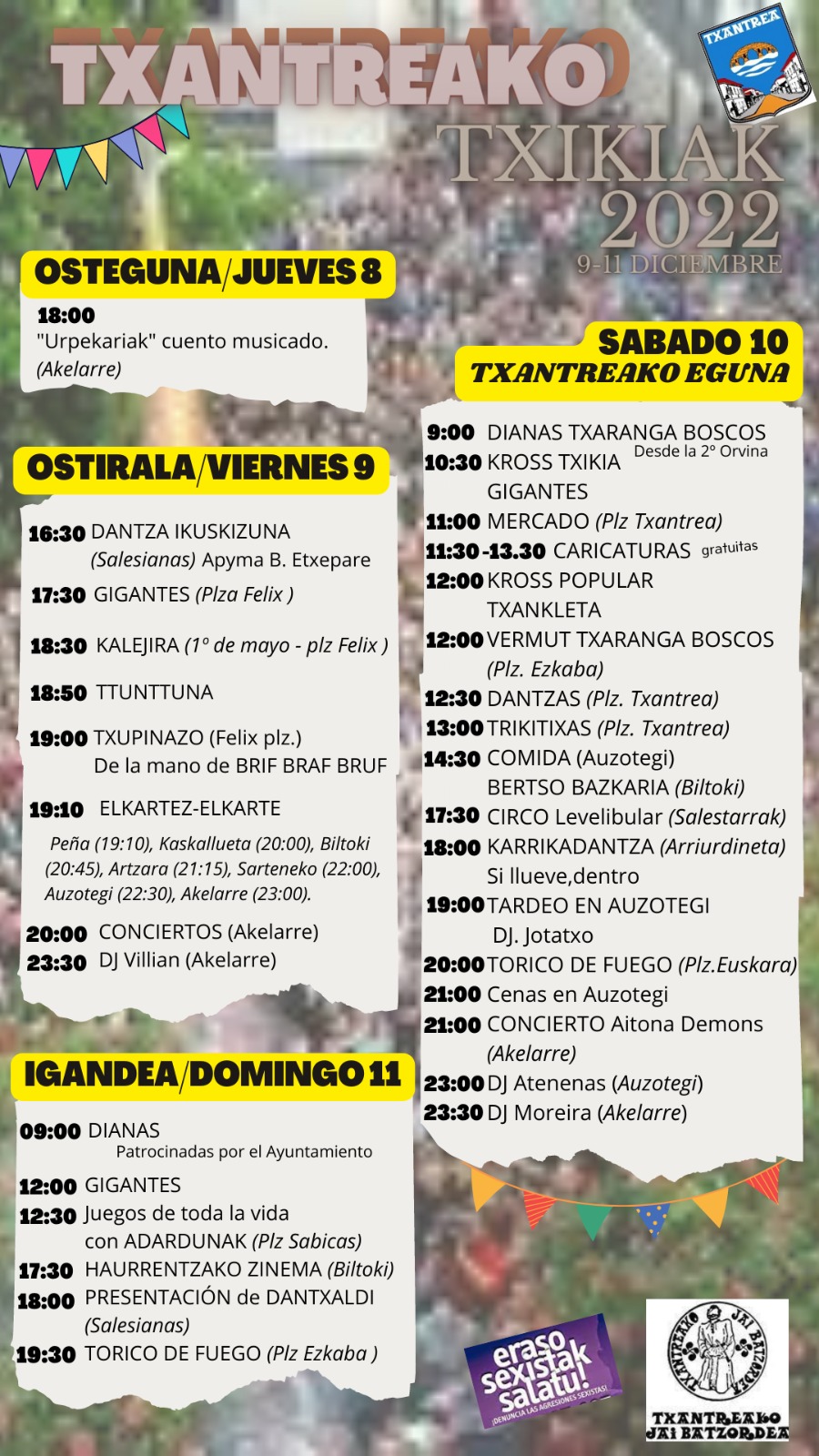 Aquí tienes el programa que la Comisión de Fiestas de la Txantrea ha organizado para las fiestas txikis de 2022.