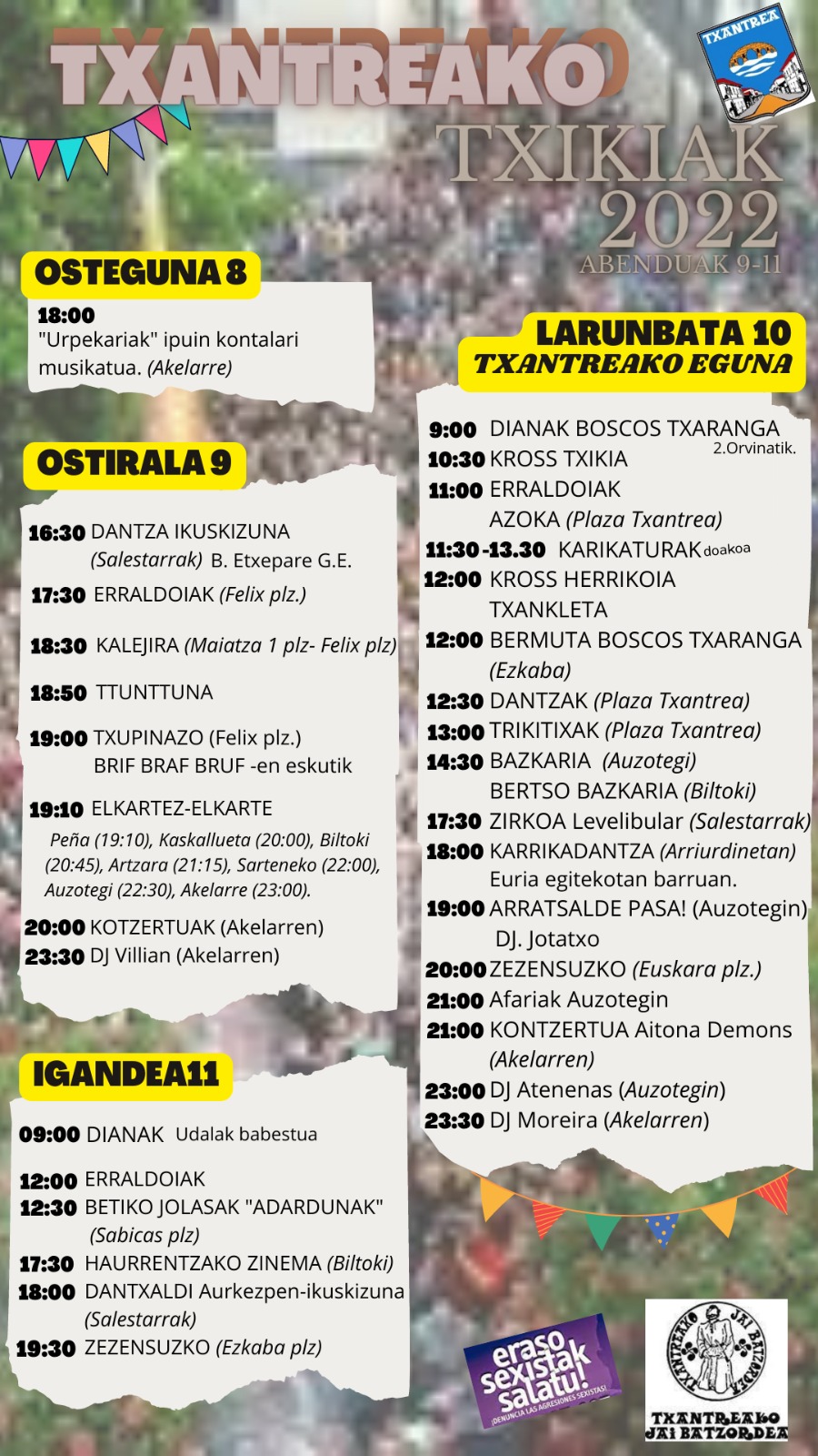 Hemen duzu Txantreako Jai Batzordeak 2022ko jai txikietarako antolatu duen egitaraua.